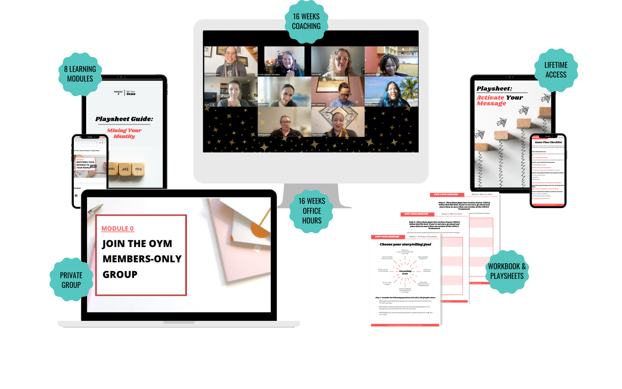 This is an intimate incubator that includes: guided step-by-step coaching, "Hot Seats" for personalized feedback, a course workbook of time-saving playsheets, prompts, and templates.
